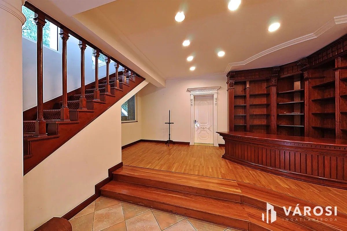 A négyszintes épület jelenleg irodai célokra is kiválóan alkalmas, de lakóingatlan esetén is különleges lehetőséget kínál. Az alagsorban garázsok és konditerem, míg a földszinten tárgyalók és irodák kaptak helyet. Az emeleten nappali és hálószobák találhatók, a tetőtérben pedig egy szivarszoba és tetőterasz várja a lakókat.