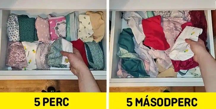 A csipke alsóneműk esetében különösen fontos az óvatos kezelés, ezért jobb őket külön tárolni. A sima alsóneműk esetében azonban nem szükséges mindig gondosan összehajtani, egyszerűen be lehet őket dobni a fiókba.