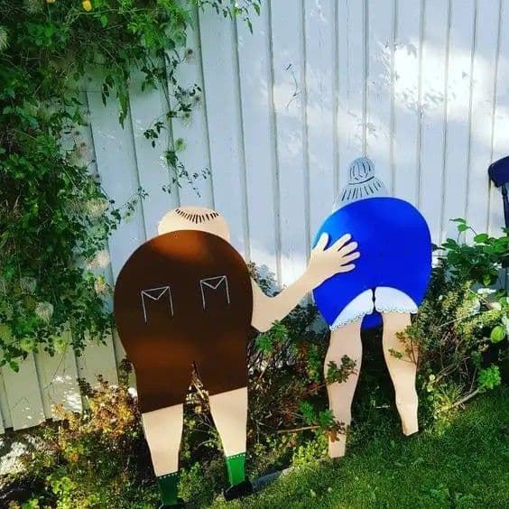 A kémlelő szomszédok alakja szintén humoros kerti dekoráció lehet, ami garantáltan mosolyt csal az arcokra.