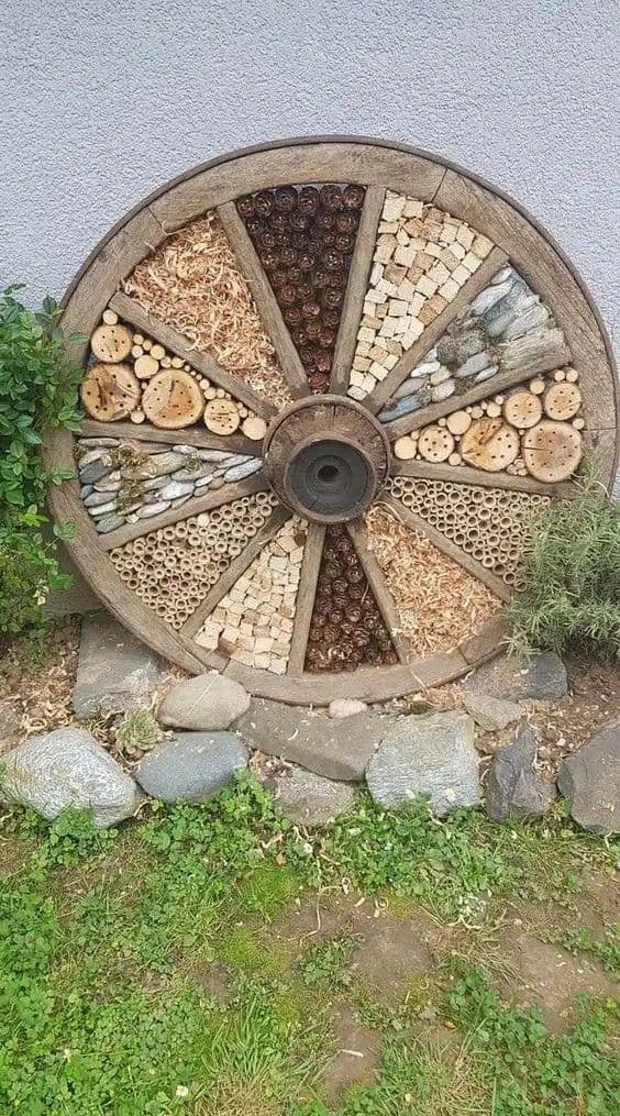 A ház előtti területre például kiválóan illik egy virágokkal teli kerék, ami azonnal vonzza a szemet.