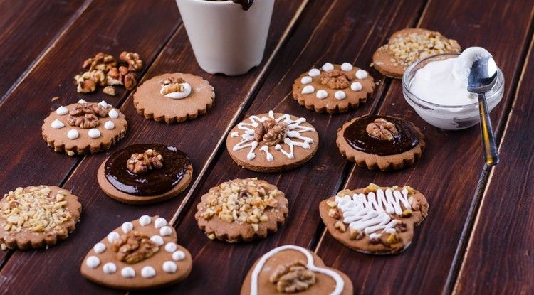 A díszítéshez használhatunk dekortollat, diót, valamint csokoládét vagy cukormázat.