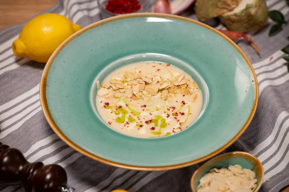 Folyamatosan újulnak meg a krémlevesek, s ez a zellerkrémleves is kiváló példa arra, hogyan válhat egy hagyományos alapanyag modern, látványos fogássá.