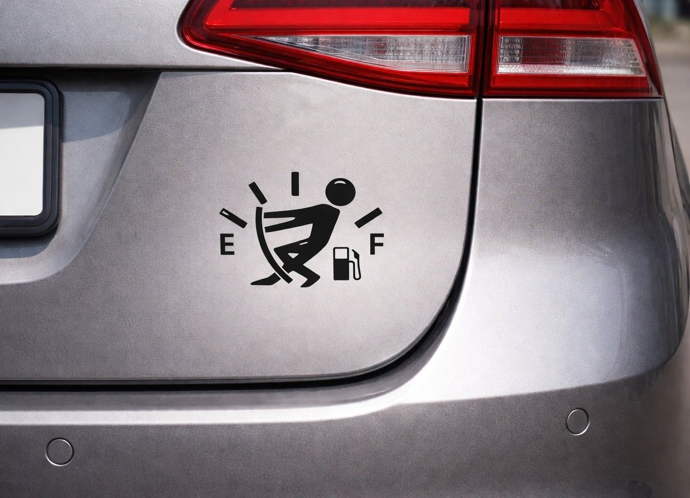 Nem csak a mosolyt kiváltó grafikáról szól ez a matrica. Az autósok egy része számára technikai figyelmeztetés: ne hagyják, hogy az üzemanyagszint a piros zónába essen. A tank szinte üresre hajtása káros lehet; a szivattyú túlhevülhet, ha nincs elég üzemanyag, ami drága javításokhoz vezethet.