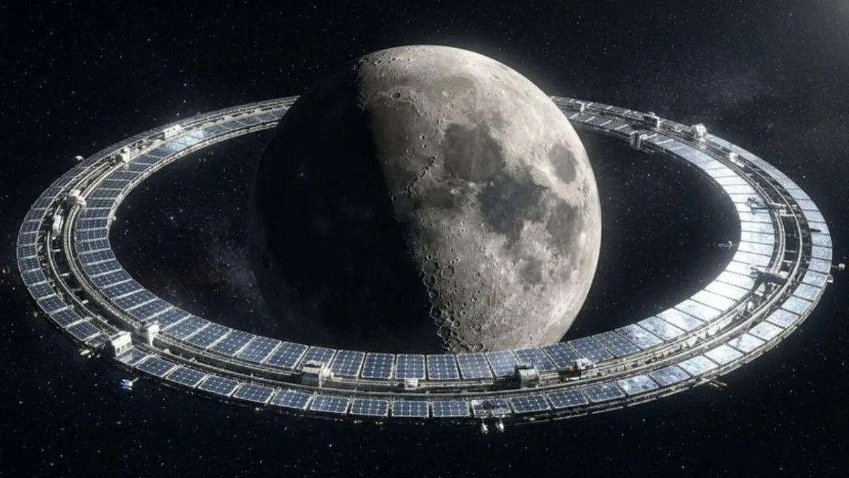 Egy képzeletbeli napgyűrű, amely a Hold körül helyezkedne el, napelemekből álló struktúrája révén alakítaná át a napfényt elektromos energiává. A Holdon tapasztalható állandó napsütés miatt a napelemek folyamatosan működhetnének, így biztosítva az állandó energiaellátást.