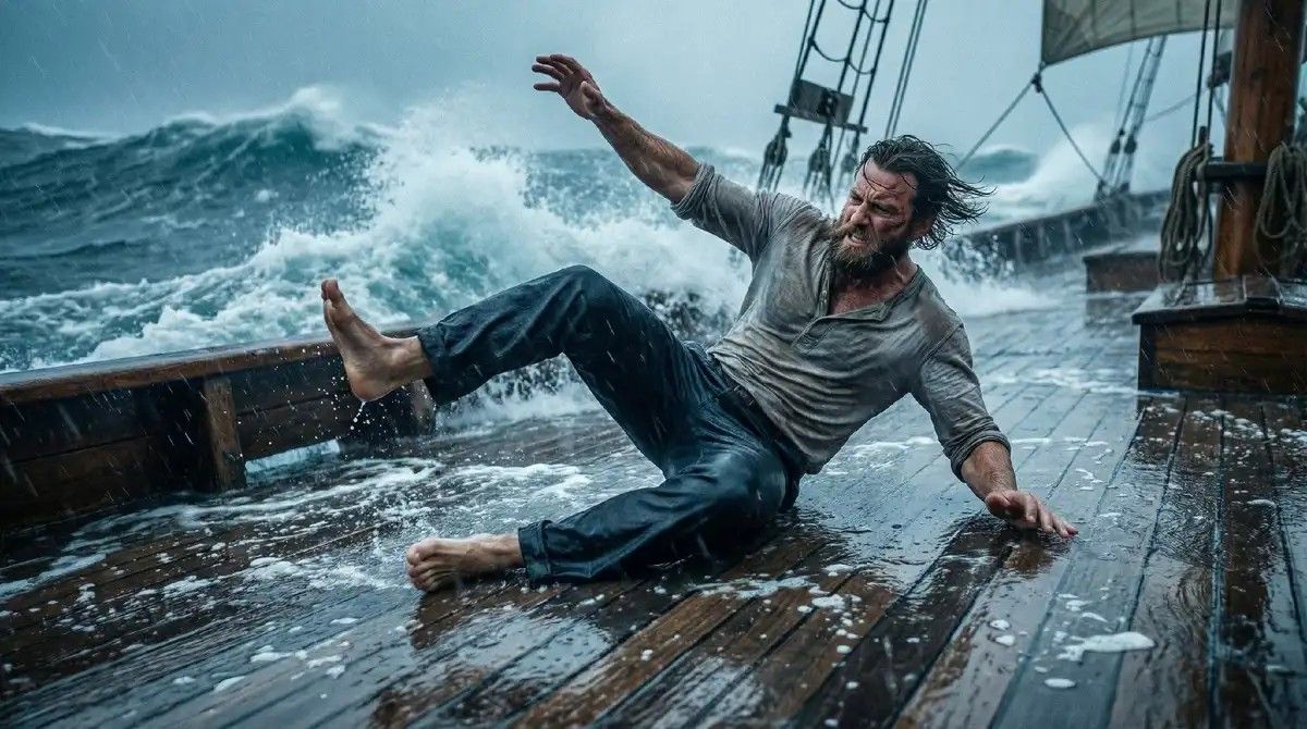 Képzeljünk el egy helyzetet: a szél fúj, a hullámok csapkodnak, a hajó fedélzete nedves, és neked négy órán keresztül folyamatosan súrolnod kell a padlót.