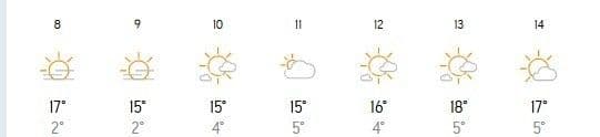 A reggelek hűvösek lehetnek, de a nap gyorsan felmelegíti a levegőt. A réteges öltözködés továbbra is ajánlott, hogy alkalmazkodhassunk a hőmérséklet változásaihoz. A kellemes meleg és napsütés energizáló hatású, így végre búcsút inthetünk a téli fáradtságnak.