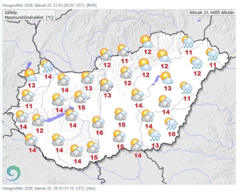 Február 23-án, hétfőn, az időjárás meglehetősen változékony lesz. Az északnyugati területeken délután felszakadozik a felhőzet, ám estére újabb felhősödés érkezik. Az ország nagy részén több órás napsütés is lehet, de keleten főként rövidebb napos időszakokra van esély.