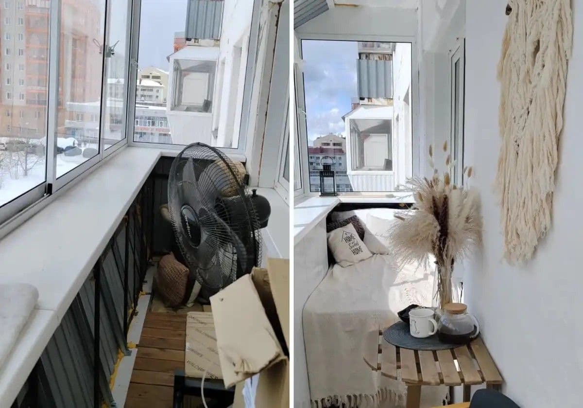 Egy másik példa egy 15. emeleten található balkon, amit sokáig raktárként használtak. A tulajdonos végül úgy döntött, hogy átalakítja a teret, eltávolította a felesleges tárgyakat, és barátságos hellyé varázsolta azt. A mini bárasztallal és új bútorokkal a balkon a lakás egyik legkedveltebb részévé vált.
