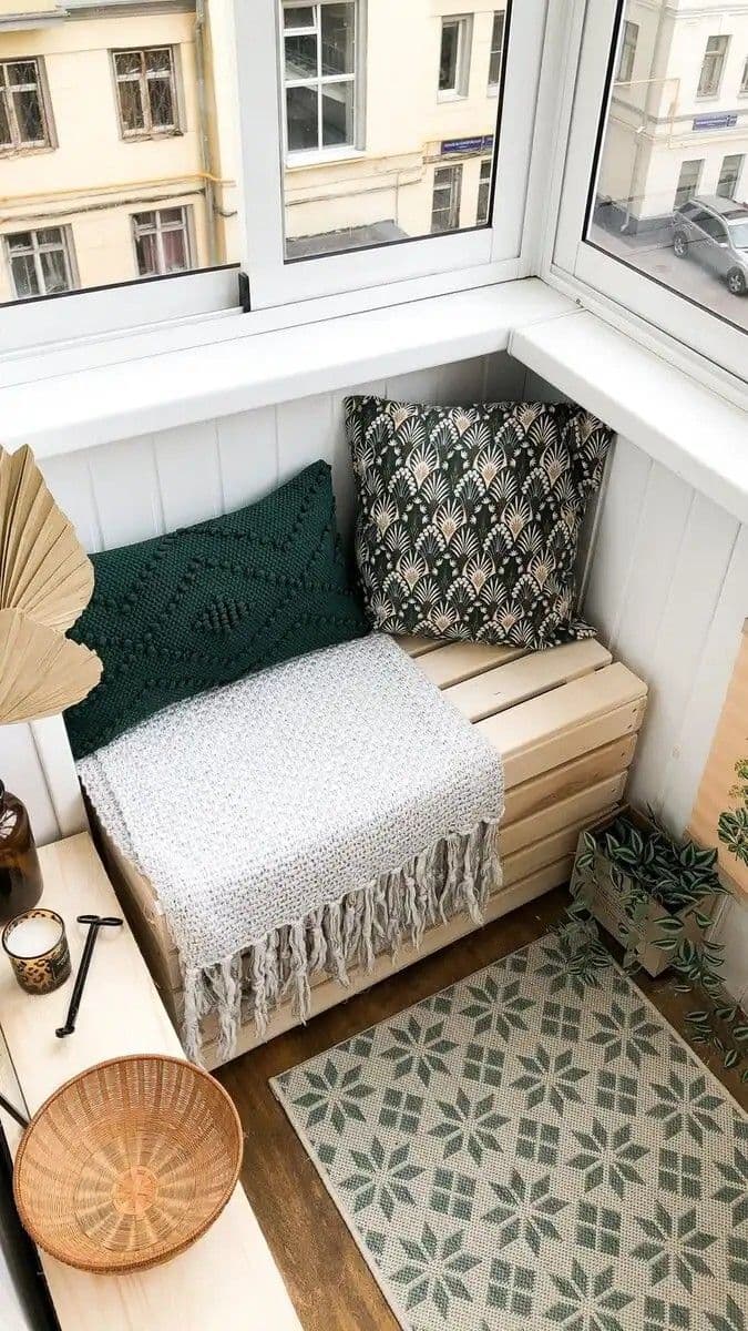 Az interneten felfedezett példa szerint egy egyszerű üvegezésű erkély is otthonossá varázsolható. A tulajdonos szerint a szigetelés miatt az ajtó egész évben nyitva maradhat, így a balkon bármikor használható. Egy könyvvel vagy egy csésze kávéval remek hely néhány percnyi nyugalomra.