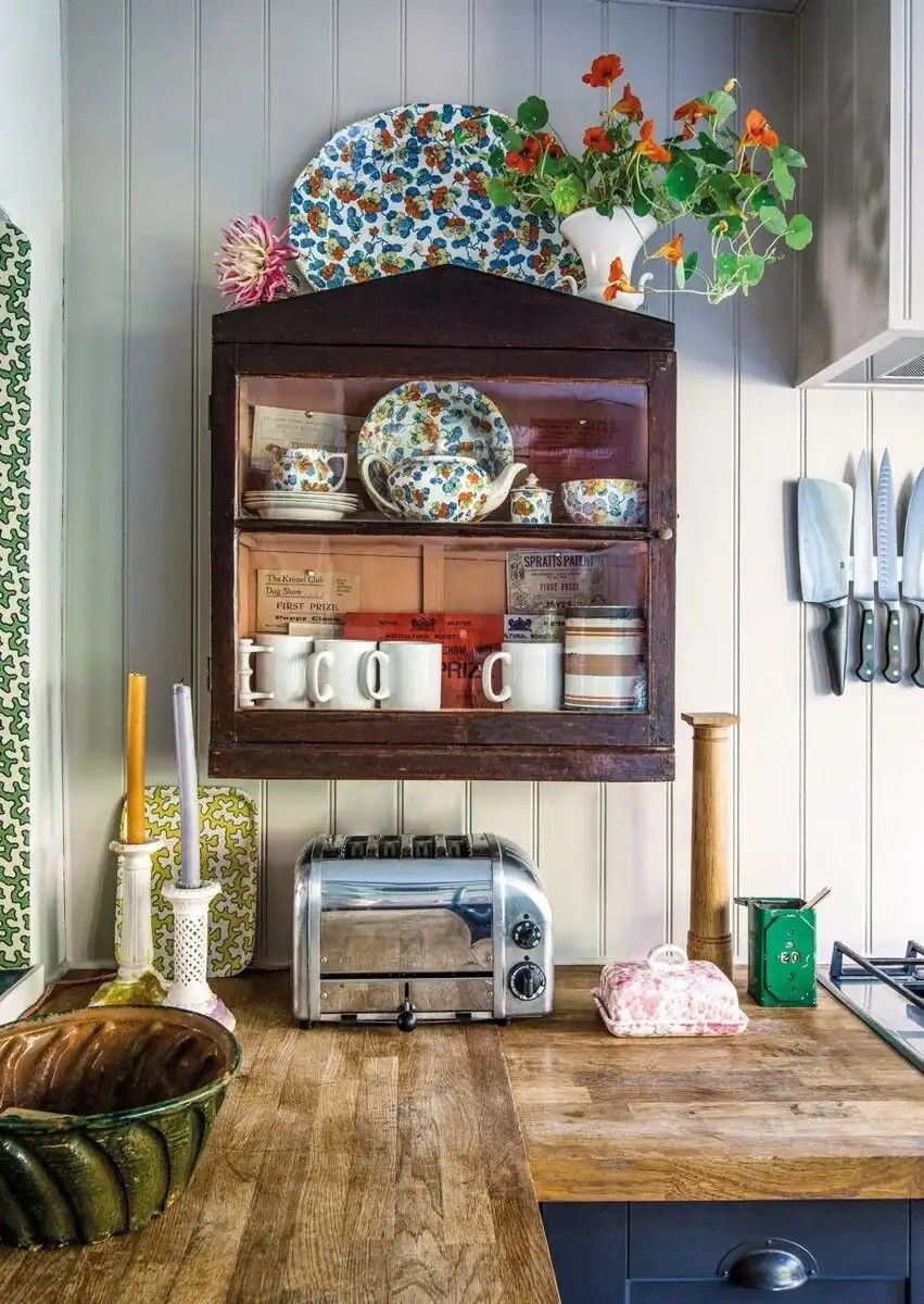 Az étkezőben egy régi vitrines szekrény található, ahol Libby porcelángyűjteményét tartja. Ezeket a darabokat helyi bolhapiacokról vagy az eBay-en szerezte be.