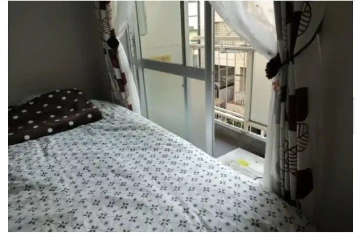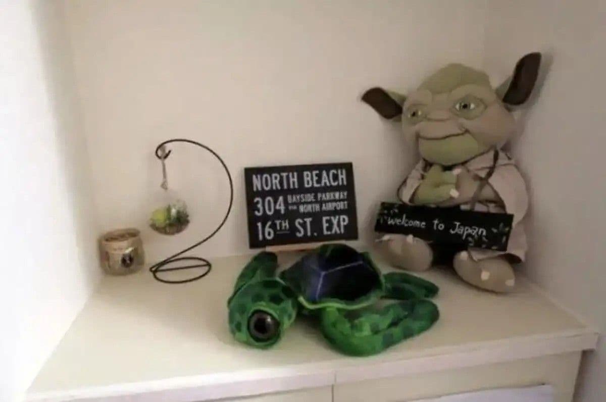 A lakás egyik különlegessége az ágy mögött található apró erkély, ahová az ágyon keresztül lehet kijutni. Bár a hely szűkös, Keiko örül annak, hogy van lehetősége egy kis friss levegőt szívni.