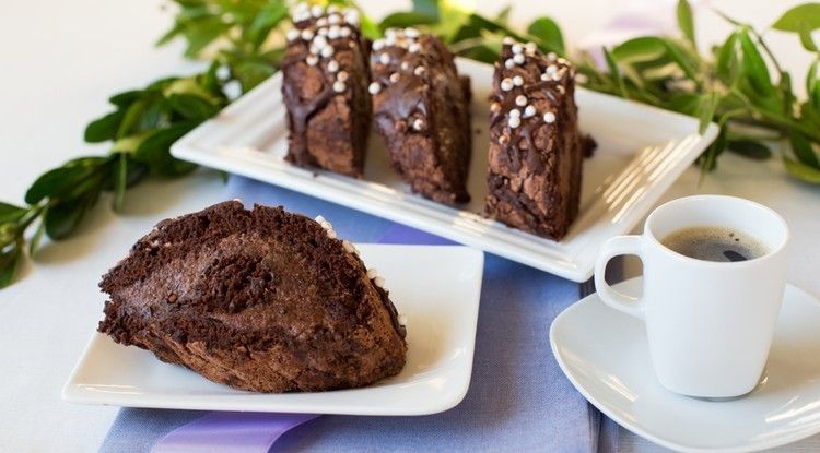 Először melegítse elő a sütőt 220°C-ra, és készítse elő a tepsit sütőpapírral. Olvassza fel az étcsokoládét vízfürdőben, majd verje fel a tojásfehérjét cukorral kemény habbá. Apránként adja hozzá a lisztet, a kakaót és az olvadt csokoládét. A kész masszát simítsa a tepsibe, majd húzzon bele hosszanti csíkokat, és süsse 12 percig.