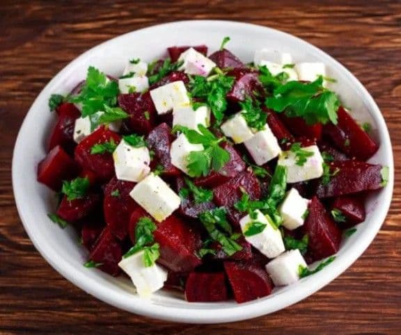 A céklát mosd meg és alufóliába csomagolva süsd meg 180 fokon egy órán át. Miután kihűlt, hámozd meg és vágd kockákra. A fetát és a petrezselymet is aprítsd fel, majd keverd össze a céklával. Az olívaolajból, balzsamecetből, citromléből és cukorból készíts öntetet, majd locsold meg vele a salátát.