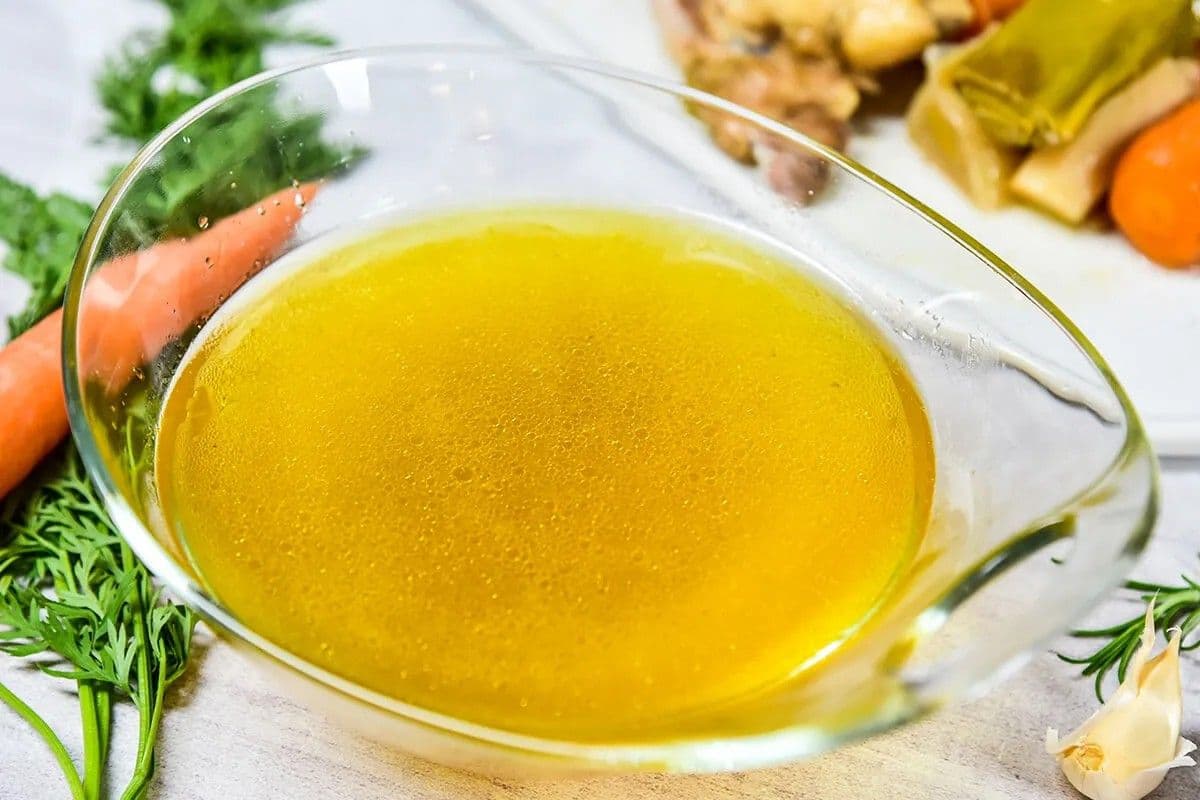 8. Ha kész, a zöldségeket és csontokat eltávolítjuk, a levet leszűrjük.