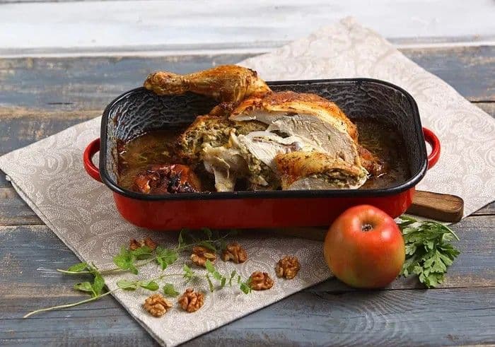 Ínycsiklandó ünnepi csoda: sült töltött csirke mézes almával