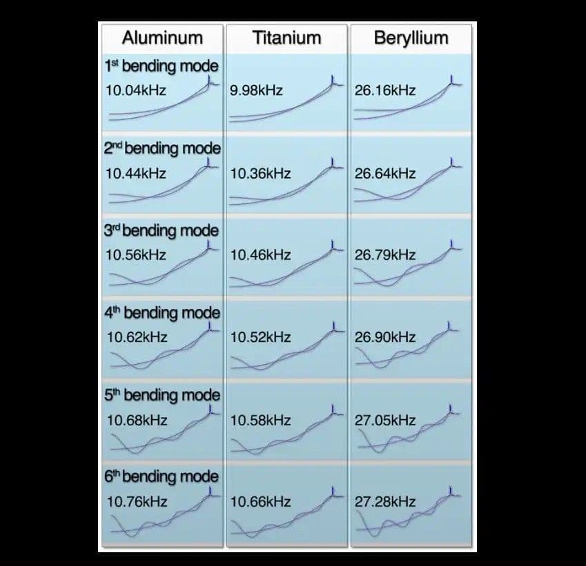 A hangsebesség a berilliumban kiemelkedően magas, körülbelül 12 900 m/s. Ez teszi a legjobb anyaggá precíziós hangszórók és mikrofonok számára, mivel a kristályrács merevsége miatt torzítás nélkül továbbítják a hangot.