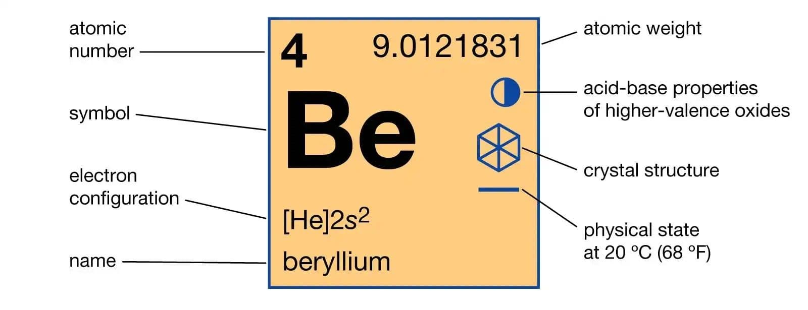 A berillium atomjai kicsik és kompaktak, mindössze két elektron található a külső héjukon. Ez a struktúra az oka annak, hogy a berillium nem viselkedik úgy, mint egy tipikus fém, és elektronjai sokkal erősebben kötődnek az atommaghoz.