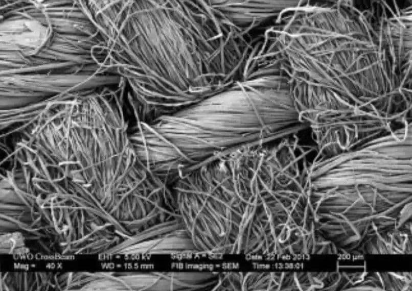 A finom szövésű anyagok simának tűnhetnek, de a mikroszkóp felfedi a szövés részleteit. Ez a textúra az anyagok szerkezetének alapja.
