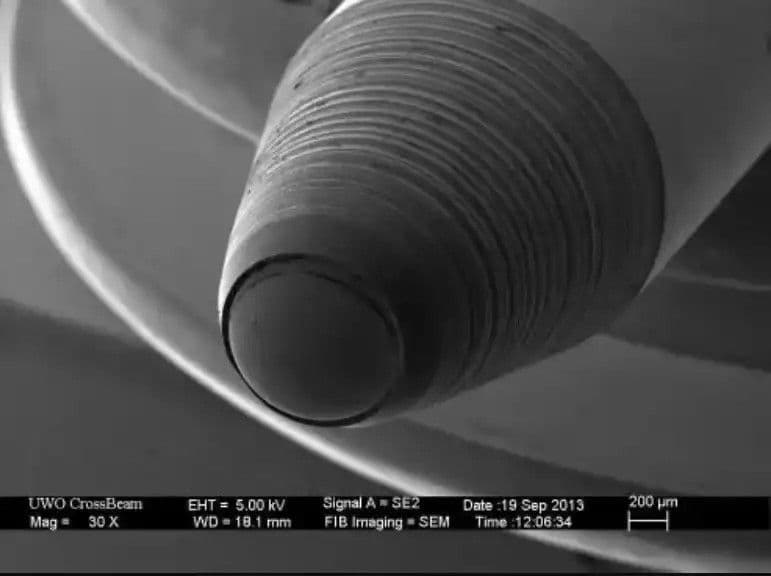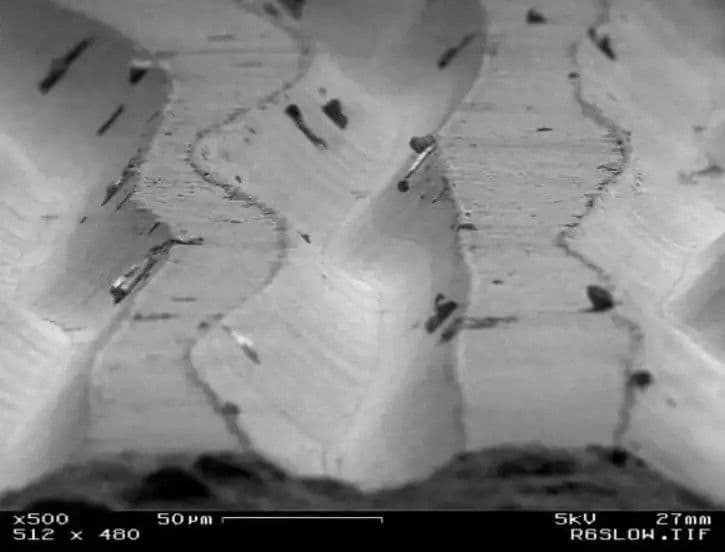 A borotva mikroszkópos képe megmutatja, hogy még a legélesebb penge sem tökéletesen sima. A penge minőségét az egyenetlenségek mennyisége határozza meg.