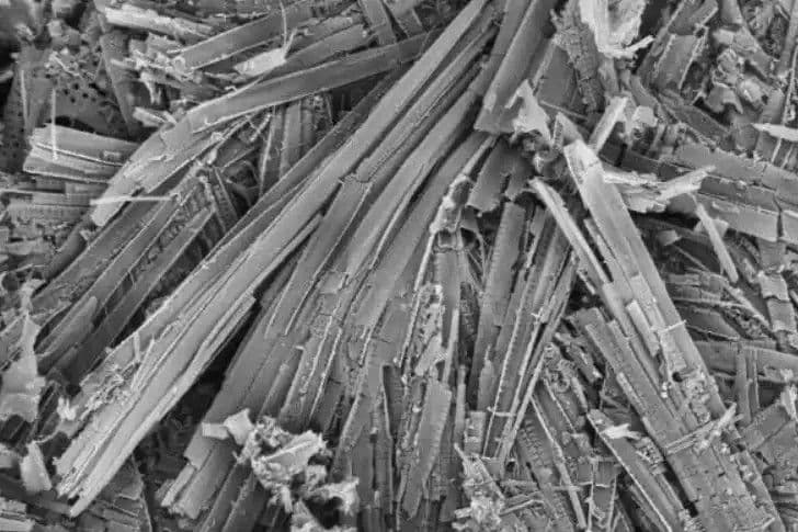 Az azbeszt káros hatásait a mikroszkóp alatt is megfigyelhetjük. A szemcsék élesek és kampósak, ami megnehezíti azok eltávolítását a szervezetből.