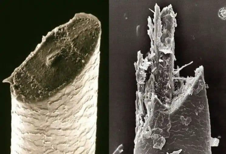 A hagyományos borotvával történő borotválkozás eredménye simább bőr, mint az elektromos borotvával elért eredmény. A pengék által vágott szőrszálak képe is alátámasztja ezt a különbséget.