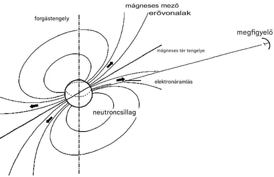 Ha a neutroncsillag eléri a megfelelő méretet és sebességet, akkor mágneses mezeje drámaian fokozódik. Az elektromos töltés gyors mozgása körül létrehozott mező még intenzívebbé válik, és ezáltal a csillag mágneses indukciója elérheti a 10¹⁵ gausst is.